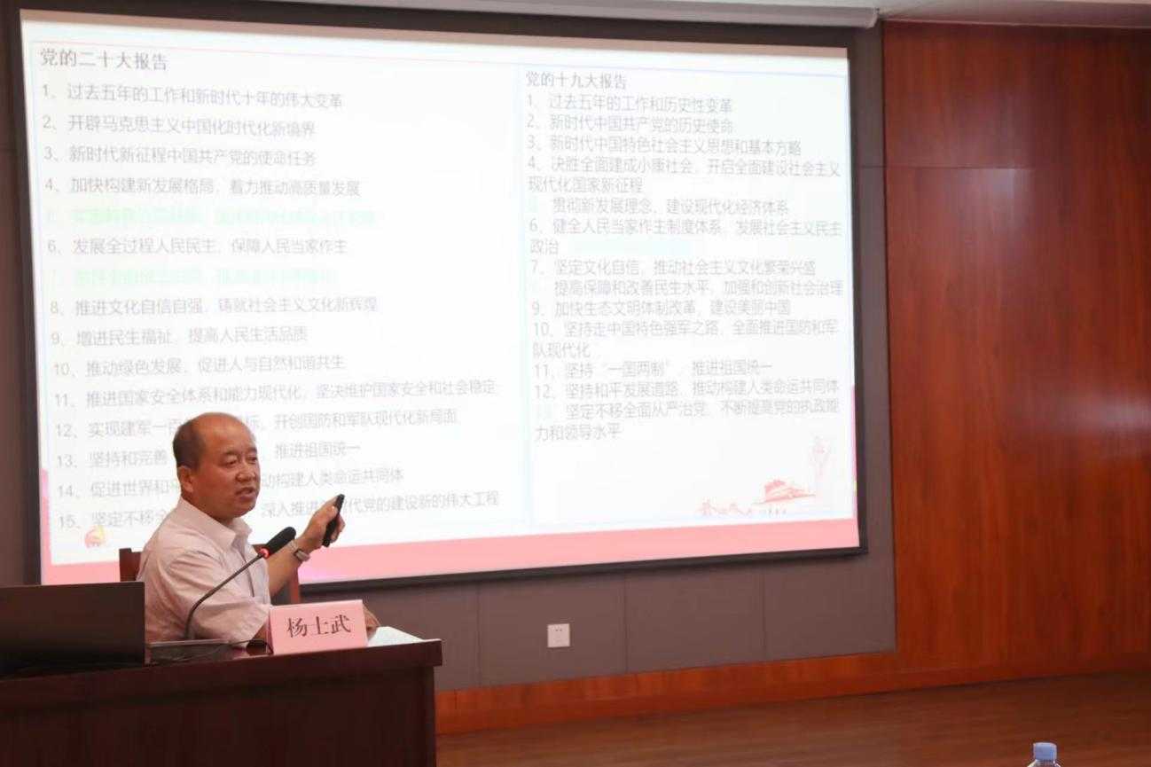 學(xué)習宣傳貫徹黨的二十大精神是當前和今后一個(gè)時(shí)期的首要政治任務(wù),為深入學(xué)習宣傳貫徹黨的二十大精神,進(jìn)一步凝聚共識,筑牢思想根基,財金集團特邀中共市委講師團副團長(cháng)、教授楊士武同志做學(xué)習貫徹黨的二十大精神專(zhuān)題宣講。宣講會(huì )以原原本本學(xué)習研讀黨的二十大報告和黨章為綱領(lǐng),帶領(lǐng)大家認真領(lǐng)悟黨的二十大提出的新思想新論斷、作出的新部署新要求。