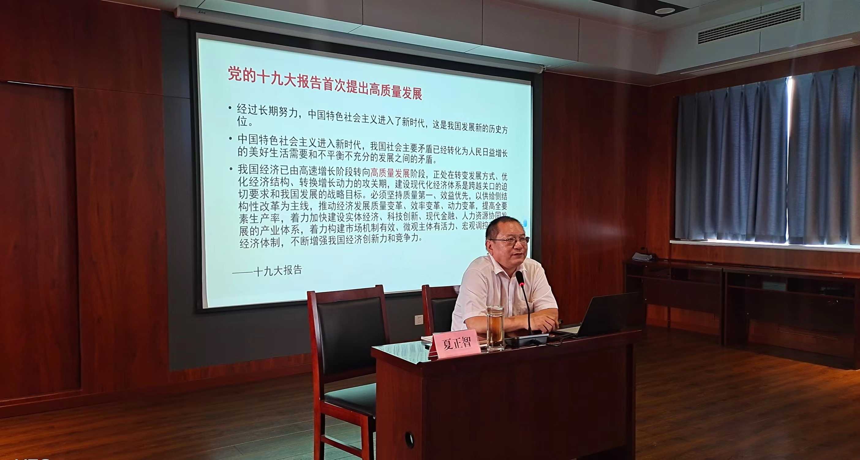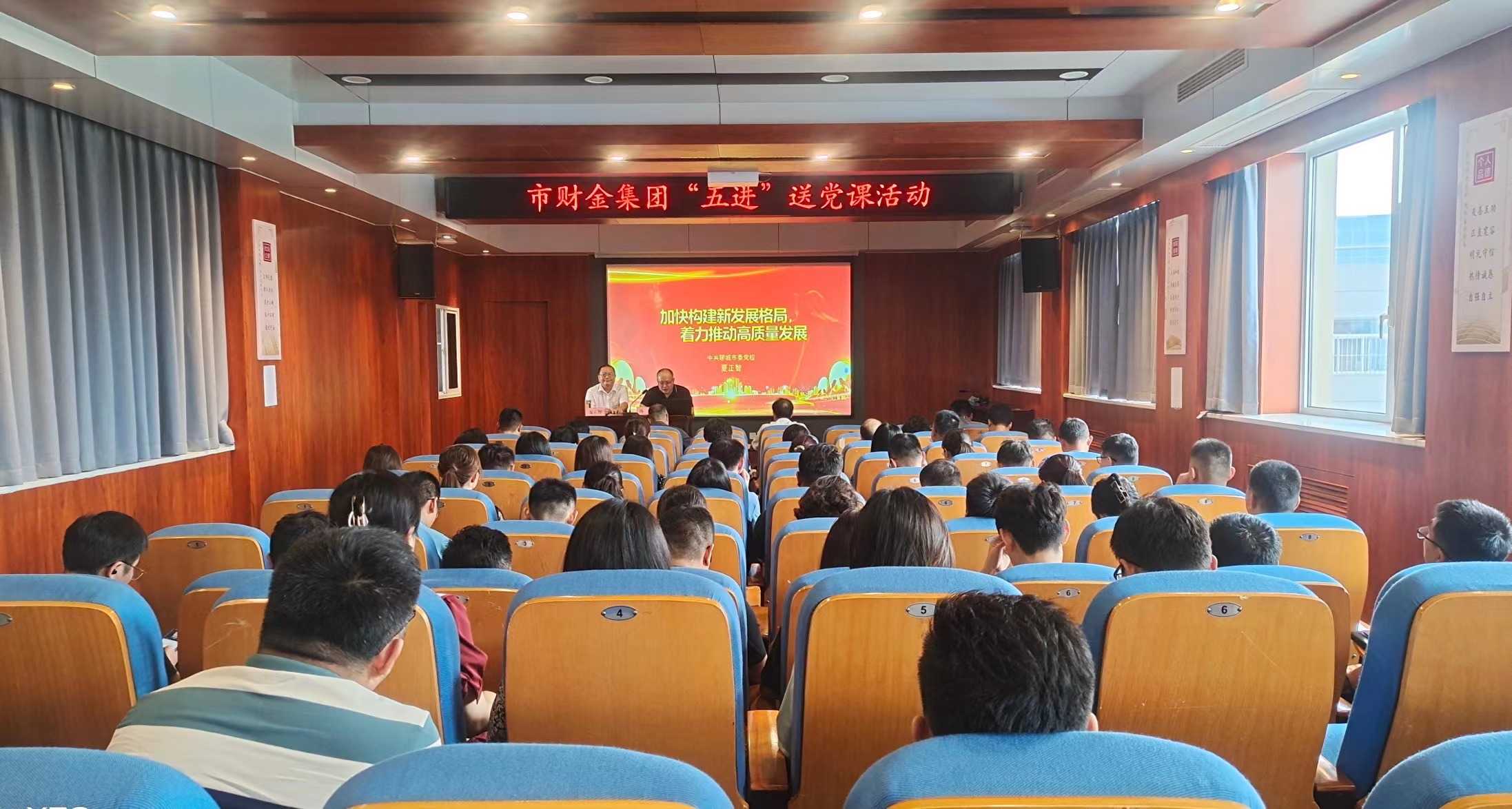 為深入學(xué)習宣傳貫徹習近平新時(shí)代中國特色社會(huì )主義思想,全面落實(shí)“學(xué)思想、強黨性、重實(shí)踐、建新功”主題教育要求,進(jìn)一步強化“提標提速提能力、敢闖敢干敢爭先”的工作標準,市國資委于近日組織開(kāi)展“五進(jìn)”送黨課活動(dòng),市委黨校國資委分校選派優(yōu)秀骨干教師在市國資系統送課“進(jìn)企業(yè)、進(jìn)項目”。9月1日,市財金集團特邀中共聊城市委黨校經(jīng)濟管理教研室夏正智教授講授黨課《加快構建新發(fā)展格局 著(zhù)力推動(dòng)高質(zhì)量發(fā)展》,市財金集團中層及以上人員、子公司負責人、各支部全體黨員、黨外人士共計80余人參加學(xué)習。
