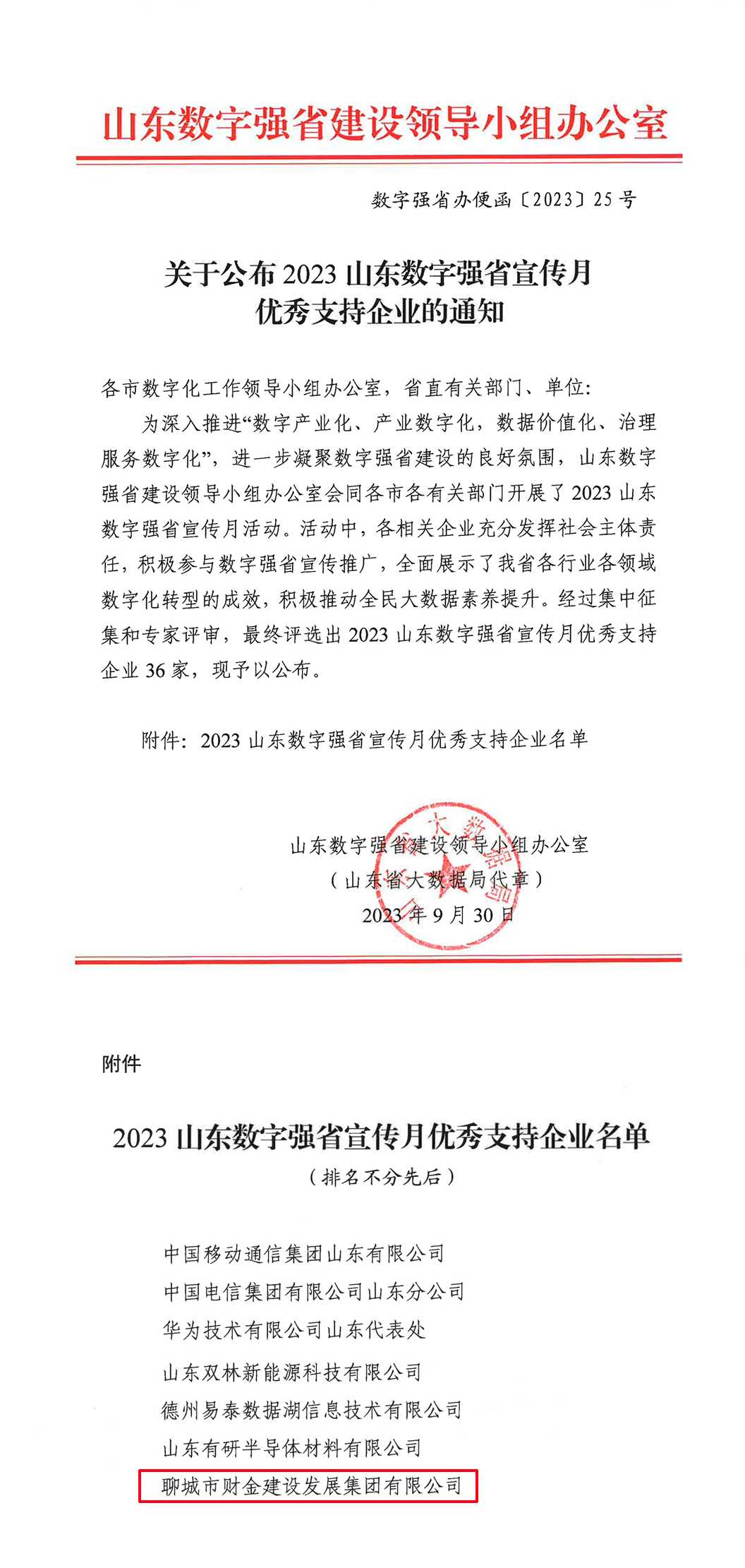 財金集團獲評“2023山東數字強省宣傳月優(yōu)秀支持企業(yè)”