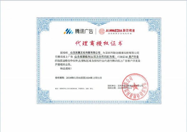 附件:1. 騰訊廣告區域及行業(yè)服務(wù)商授牌證書(shū)