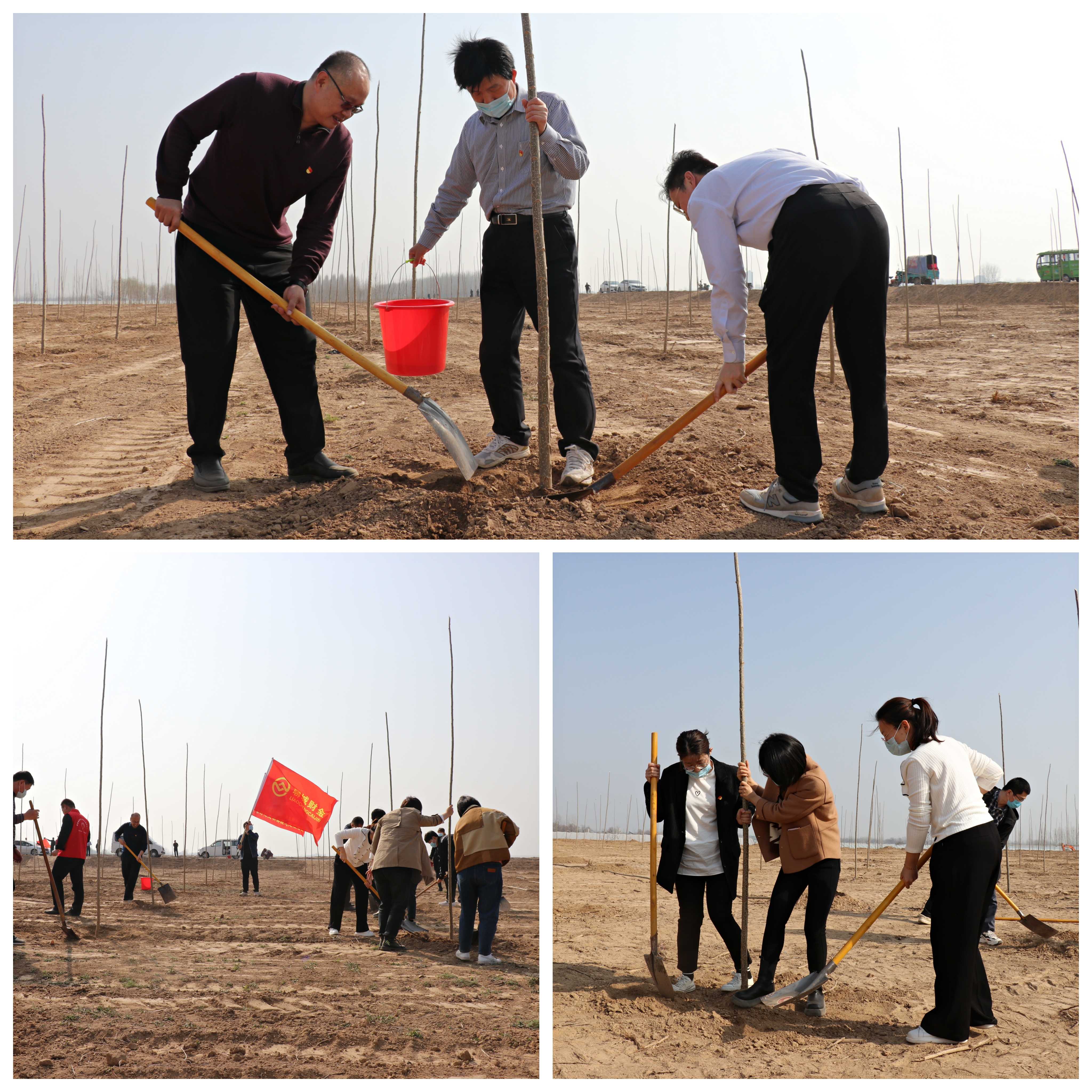 植樹(shù)現場(chǎng),黨員干部們精神抖擻,干勁十足,大家三人成組、五人成團,有的揮鍬鏟土,有的扶正苗木,有的踩土夯苗、提水澆灌,每一道工序都細致認真、有條不紊,為三月播下一片新綠。一排排新栽的樹(shù)苗整齊排列、迎風(fēng)挺立,在明媚的春光中展現勃勃生機。